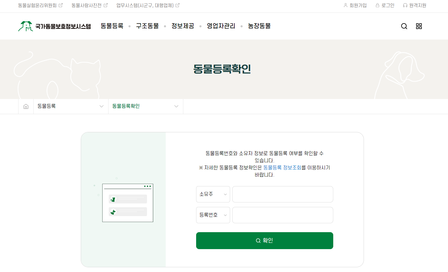 동물등록 등록된 정보를 어디서 조회할 수 있나요?